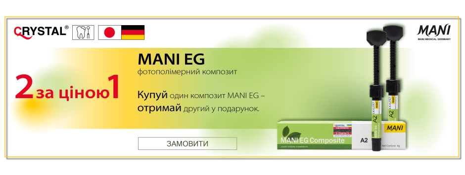 MANI EG (Мані EG), біосумісний композит. Не містить НЕМА, TEGDMA та Bis-GMA, шприц 4 г, MANI