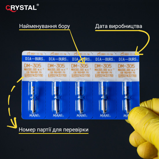 Призначений суто для створення орієнтирних борозен заданої глибини під час препарування зубів під вініри та коронки, що дозволяє контрольовано та ощадно видаляти тверді тканини зубів на вестибулярних та оральних поверхнях.