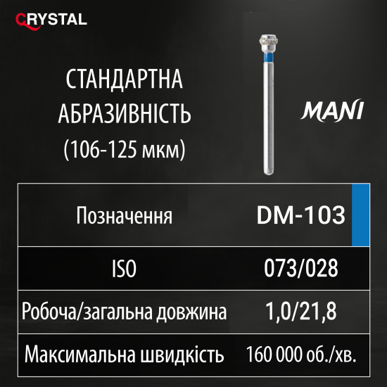 Алмазний бор DM-103 (Depth marker - Маркер глибини). Маркерний, ISO 073/028, синій, Mani (Japan)