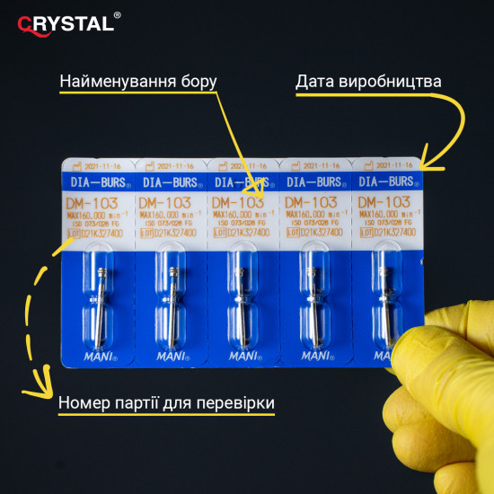 Призначений суто для створення орієнтирних борозен заданої глибини під час препарування зубів під вініри та коронки, що дозволяє контрольовано та ощадно видаляти тверді тканини зубів на вестибулярних та оральних поверхнях.