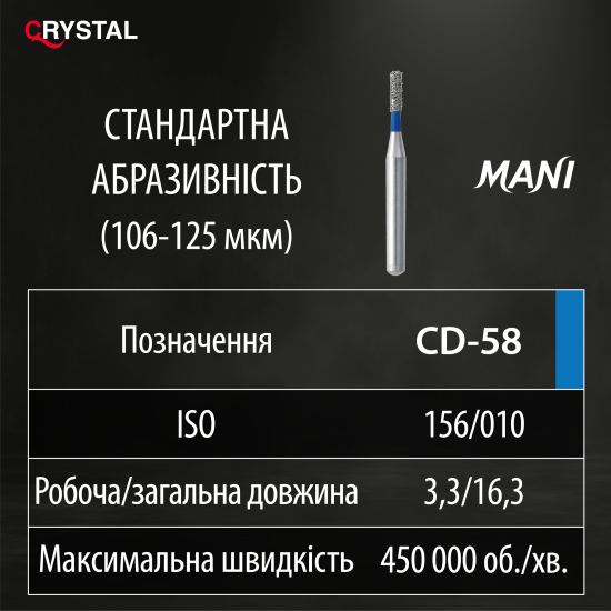 Алмазний бор CD-58 (Child Dentistry - Для дитячої стоматології). Фісура, ISO 156/010, синій, Mani (Japan)
