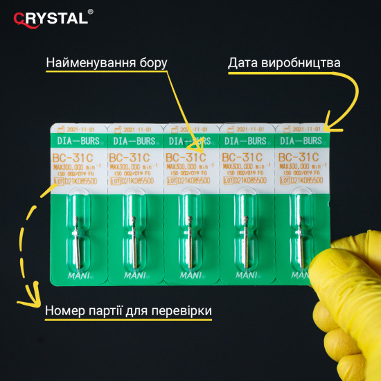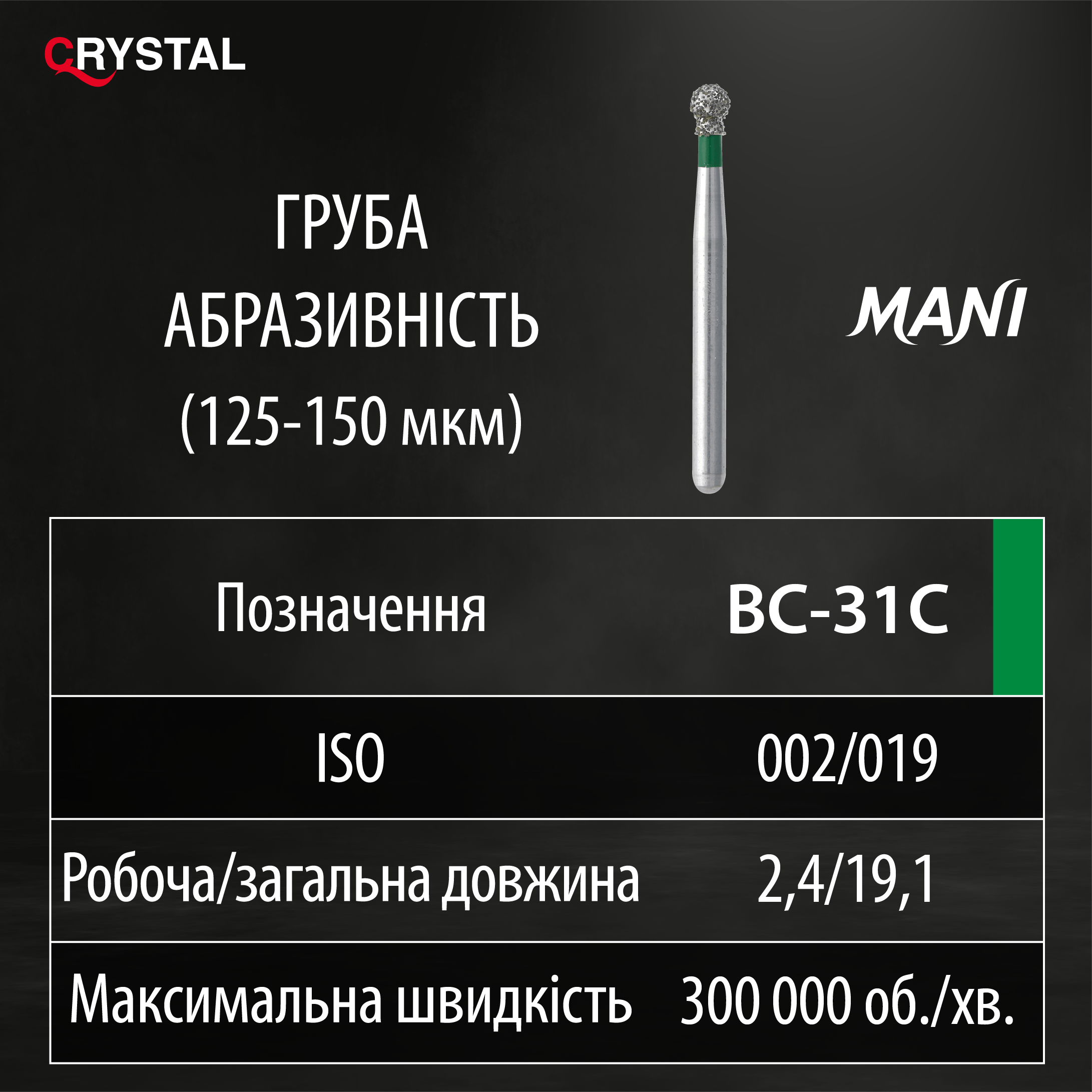 Алмазний бор BC-31C (Ball Collar - Кулястий з коміром). Кулястий з коміром, ISO 002/019, зелений, Mani (Japan)