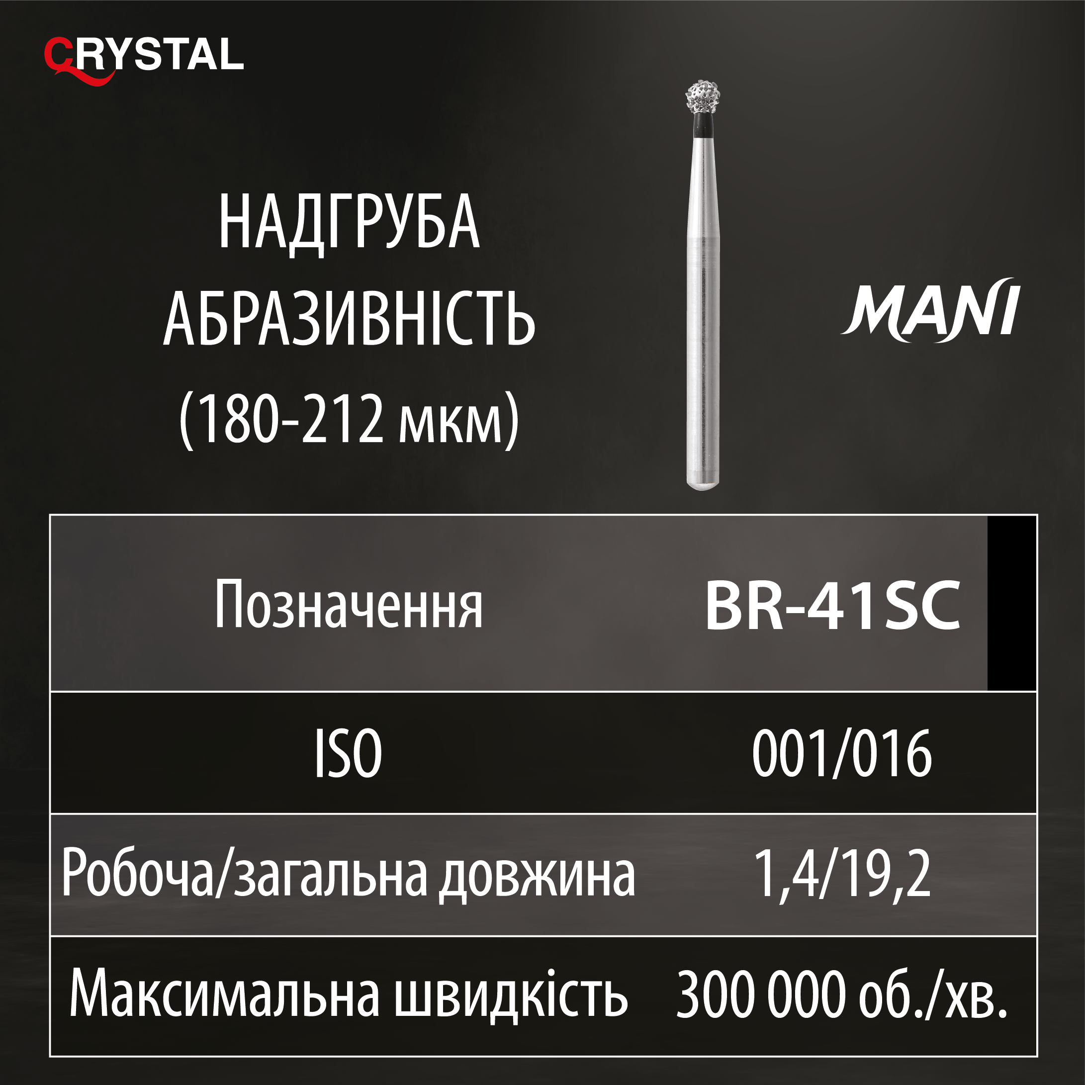 Алмазний бор BR-41SC (Ball Round - Кулястий). Кулястий, ISO 001/016, чорний, Mani (Japan)