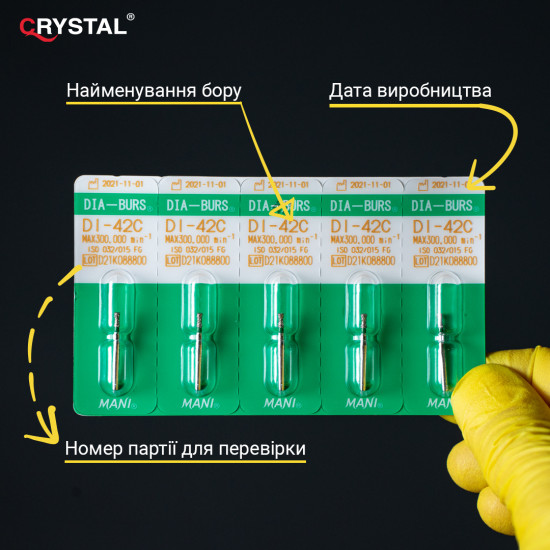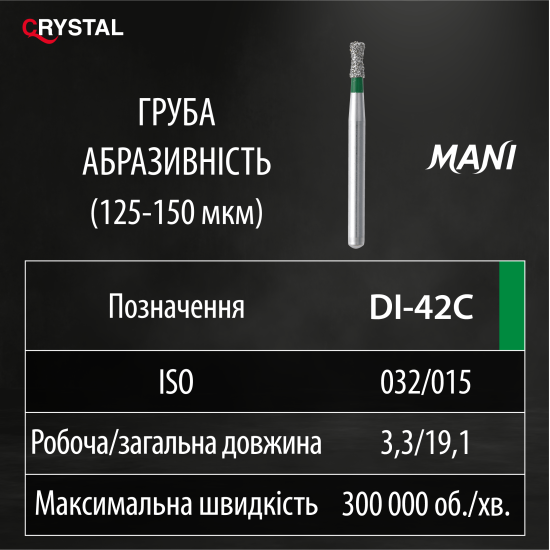 Алмазний бор DI-42C (Double Inverted - Подвійний зворотний конус). Подвійний зворотний конус, ISO 032/015, зелений, Mani (Japan)