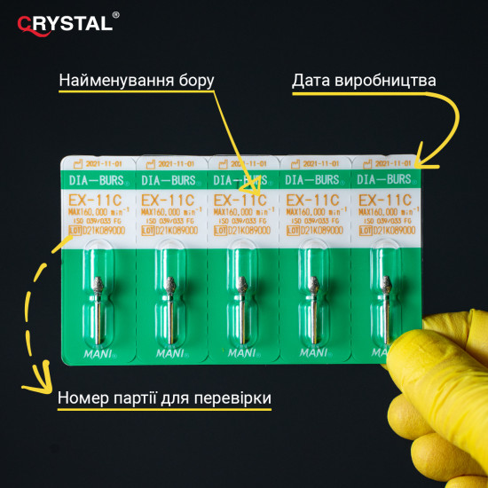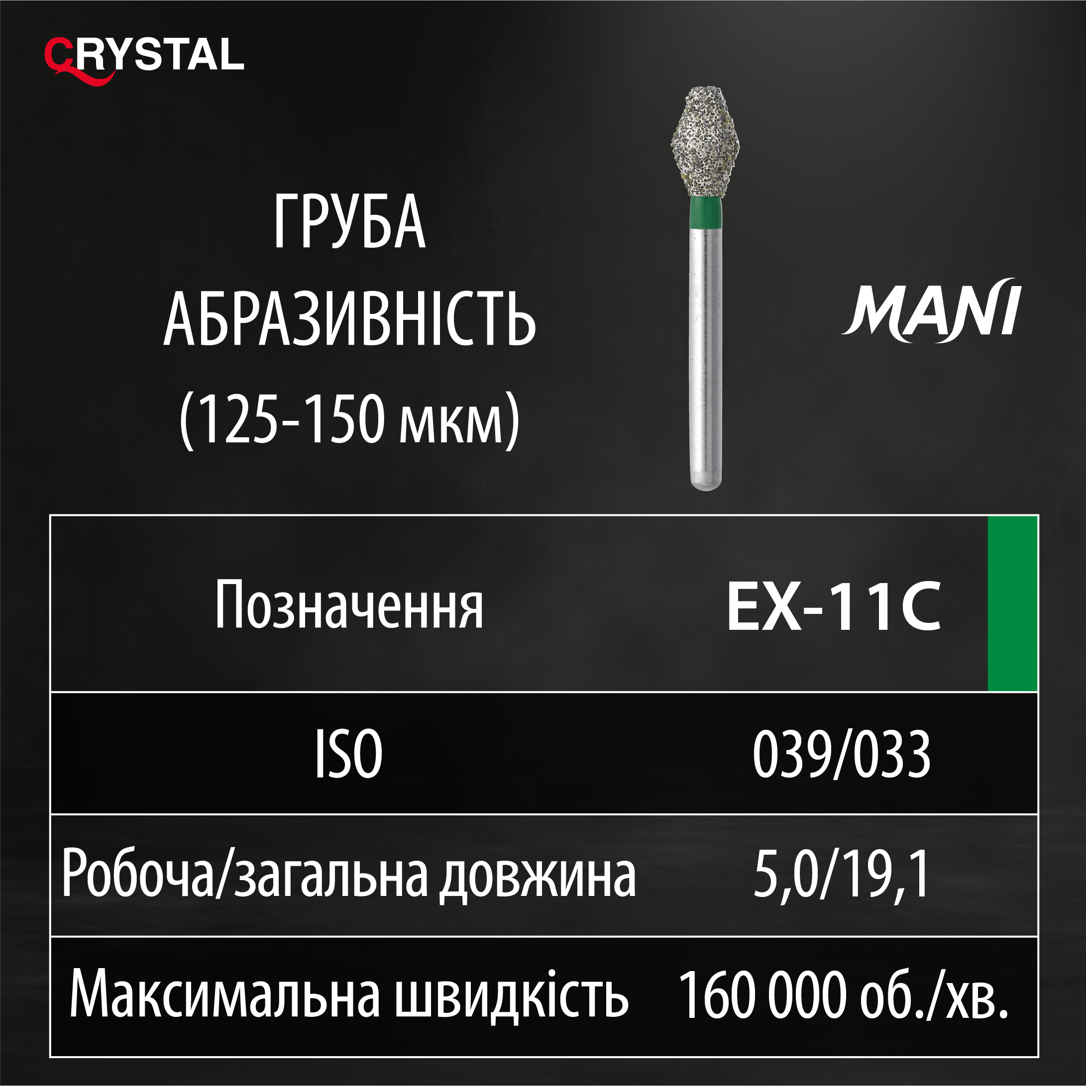 Алмазний бор EX-11C (Extra Shape - Додаткова форма). Оклюзійний, ISO 039/033, зелений, Mani (Japan)