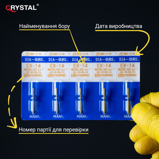 Алмазний бор EX-14 (Extra Shape - Додаткова форма). Закруглена фісура, ISO 141/016, синій, Mani (Japan)