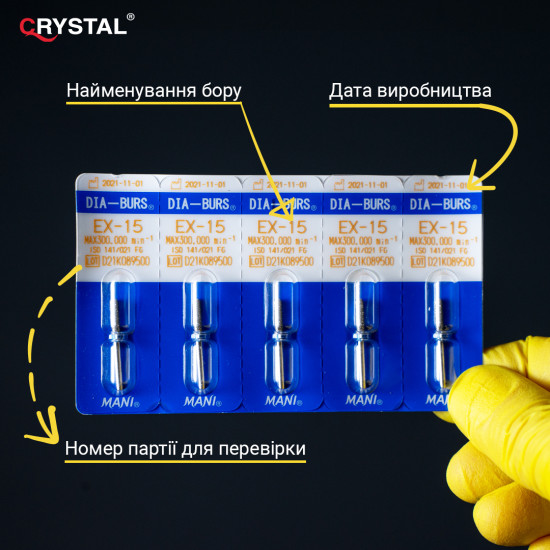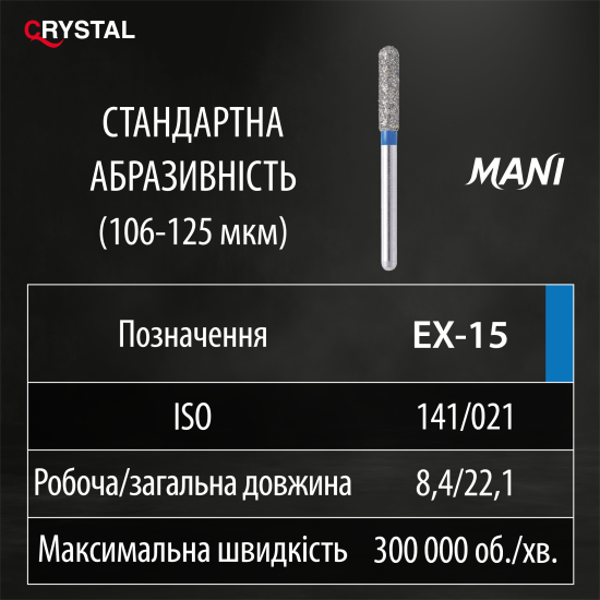 Алмазний бор EX-15 (Extra Shape - Додаткова форма). Закруглена фісура, ISO 141/021, синій, Mani (Japan)