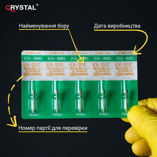 Алмазний бор EX-21C (Extra Shape - Додаткова форма). Подовжений грушоподібний, ISO 237/022, зелений, Mani (Japan)