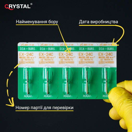 Алмазний бор EX-24C (Extra Shape - Додаткова форма). Закруглений конус, ISO 190/018, зелений, Mani (Japan)