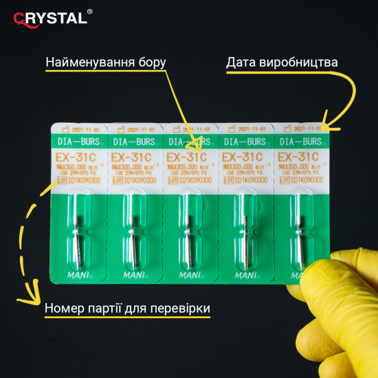 Алмазний бор EX-31C (Extra Shape - Додаткова форма). Подовжений грушоподібний, ISO 239/015, зелений, Mani (Japan)