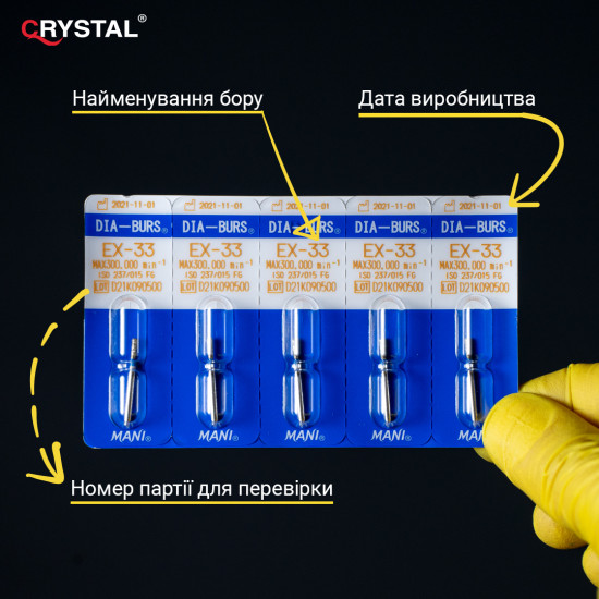Алмазний бор EX-33 (Extra Shape - Додаткова форма). Подовжений грушоподібний, ISO 237/015, синій, Mani (Japan)