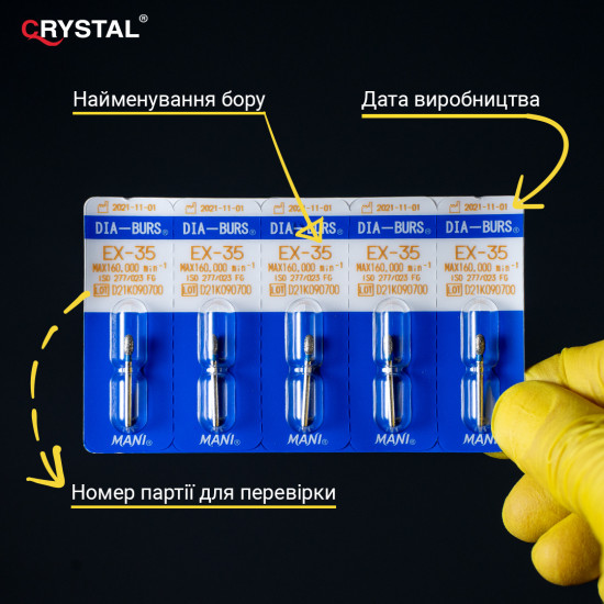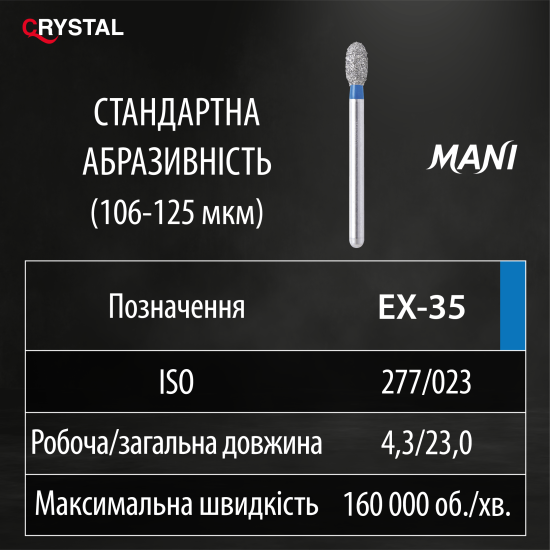 Алмазний бор EX-35 (Extra Shape - Додаткова форма). Оливка, ISO 277/023, синій, Mani (Japan)