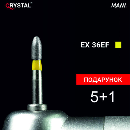 Алмазний бор EX-36EF (Extra Shape - Додаткова форма). Закруглена фісура, ISO 284/016, жовтий, Mani (Japan)