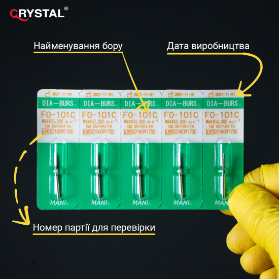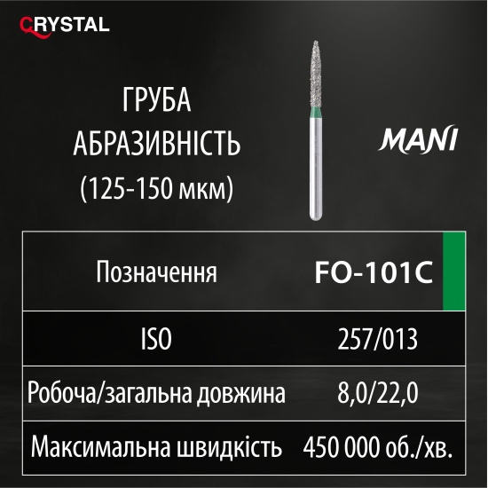 Алмазний бор FO-101C (Flame Ogival - Полум'яподібний стрілчастий кінчик). Полум'яподібний, ISO 257/013, зелений, Mani (Japan)