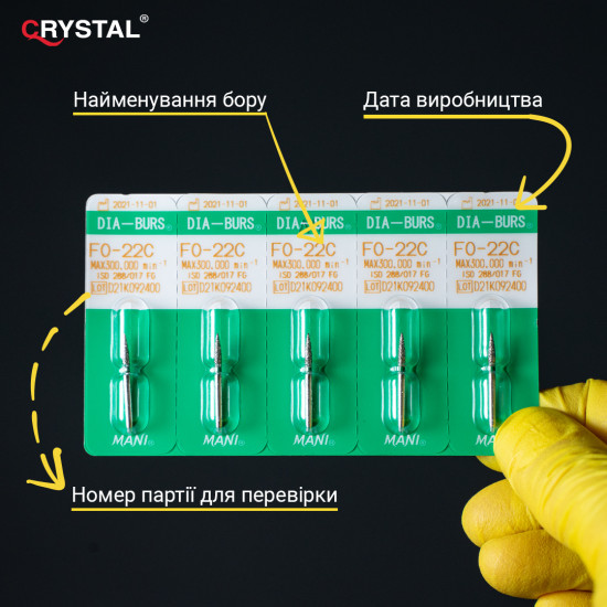 Алмазний бор FO-22C (Flame Ogival - Полум'яподібний стрілчастий кінчик). Полум'яподібний, ISO 288/017, зелений, Mani (Japan)