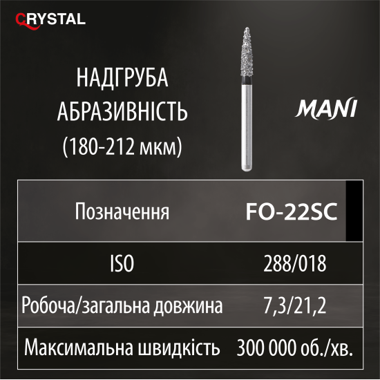 Алмазний бор FO-22SC. Полум'яподібний (ISO 288/018), чорний, Mani.