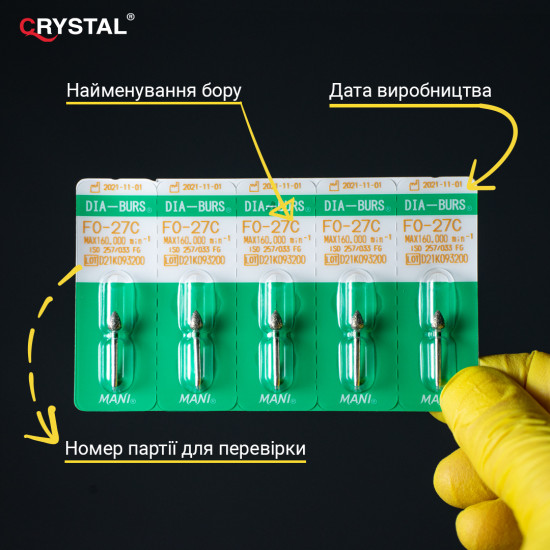 «Оливка» з гострим кінчиком використовується для препарування оклюзійних поверхонь різців і іклів при підготовці зуба під всі види коронок. «Оливка» з заокругленим кінчиком використовується для препарування оклюзійної поверхні зубів. Крім того, цей же бор малих діаметрів використовується для фінішної обробки прямих і непрямих реставрацій на оклюзійних поверхнях.