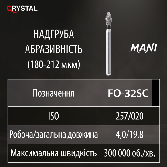 Алмазний бор FO-32SC (Flame Ogival - Полум'яподібний стрілчастий кінчик). Оливка, ISO 257/020, чорний, Mani (Japan)