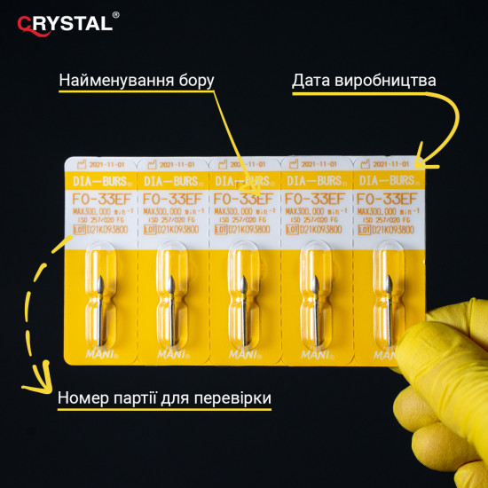 Алмазний бор FO-33EF (Flame Ogival - Полум'яподібний стрілчастий кінчик). Оливка, ISO 257/020, жовтий, Mani (Japan)