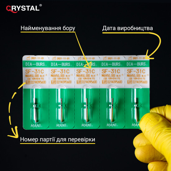 Алмазний бор SF-31C (Straight Flat - Прямий плоский кінчик). Фісура, ISO 109/014, зелений, Mani (Japan)