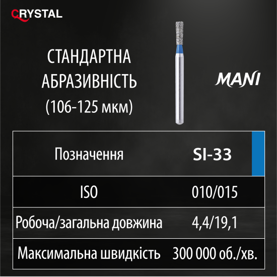 Алмазний бор SI-33. Зворотний конус (ISO 010/015), синій, Mani.