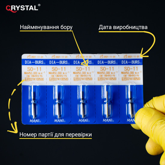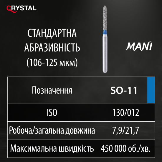Алмазний бор SO-11 (Straight Ogival - Прямий стрілчастий кінчик). Фісура-олівець, ISO 130/012, синій, Mani (Japan)