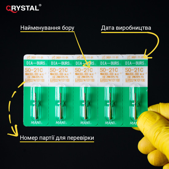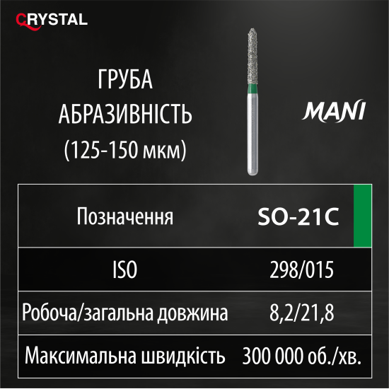 Алмазний бор SO-21C (Straight Ogival - Прямий стрілчастий кінчик). Фісура-олівець, ISO 298/015, зелений, Mani (Japan)