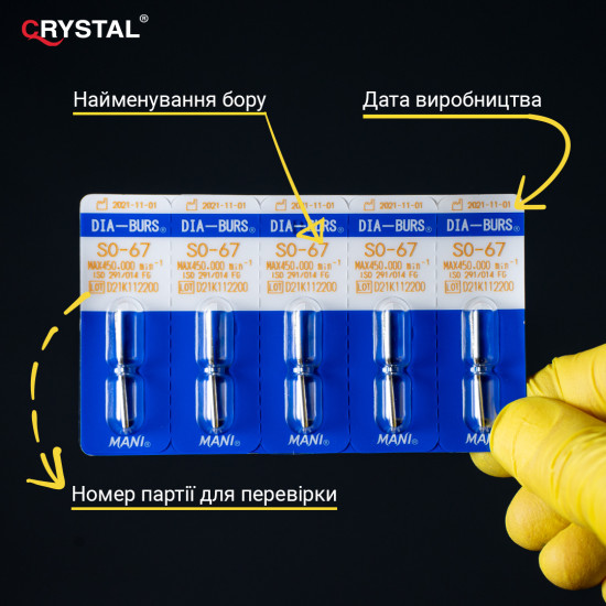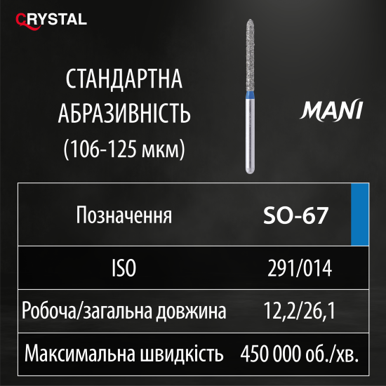 Алмазний бор SO-67 (Straight Ogival - Прямий стрілчастий кінчик). Фісура-олівець, ISO 291/014, синій, Mani (Japan)