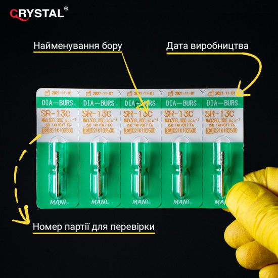Алмазний бор SR-13C (Straight Round - Прямий, закруглений кінчик). Закруглена фісура, ISO 141/017, зелений, Mani (Japan)