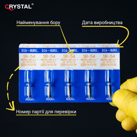 Алмазний бор SR-54 (Straight Round - Прямий, закруглений кінчик). Закруглена фісура, ISO 139/012, синій, Mani (Japan)