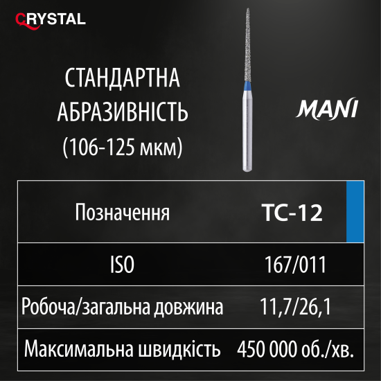 Алмазний бор TC-12 (Taper Conical - Конусоподібний плоский кінчик). Конус, ISO 167/011, синій, Mani (Japan)