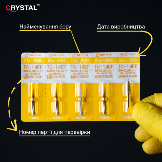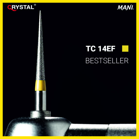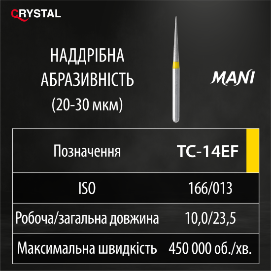 Алмазний бор TC-14EF (Taper Conical - Конусоподібний плоский кінчик). Конус, ISO 166/015, жовтий, Mani (Japan)