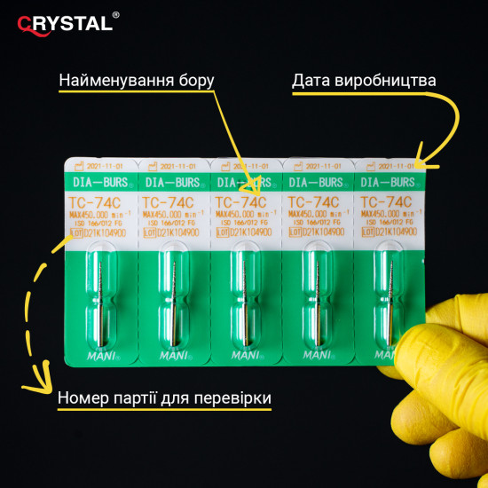 Алмазний бор TC-74C (Taper Conical - Конусоподібний плоский кінчик). Конус, ISO 166/012, зелений, Mani (Japan)