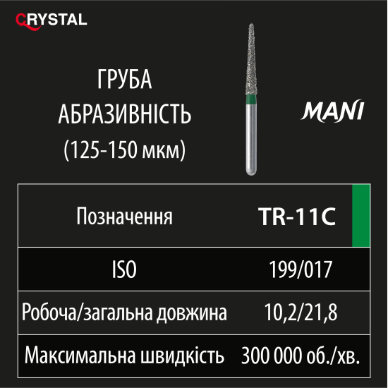 Алмазний бор TR-11C (Taper Round - Конусоподібний закруглений кінчик). Закруглений конус, ISO 199/017, зелений, Mani (Japan)