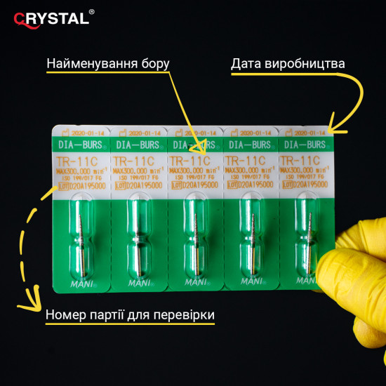 Використовується для формування закруглених уступів під час препарування під металокерамічні, металеві коронки та коронки на каркасі з діоксиду цирконію. Бор дозволяє сформувати скошений уступ з кутом скосу 100-110 градусів (жолоб).