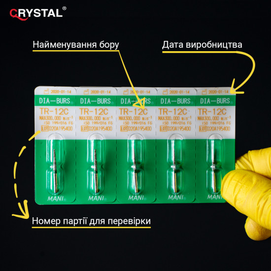 Використовується для формування закруглених уступів під час препарування під металокерамічні, металеві коронки та коронки на каркасі з діоксиду цирконію. Бор дозволяє сформувати скошений уступ з кутом скосу 100-110 градусів (жолоб).