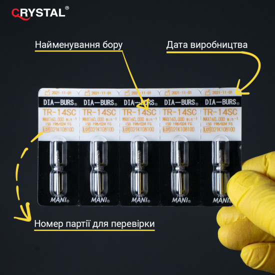 Використовується для формування закруглених уступів під час препарування під металокерамічні, металеві коронки та коронки на каркасі з діоксиду цирконію. Бор дозволяє сформувати скошений уступ з кутом скосу 100-110 градусів (жолоб).