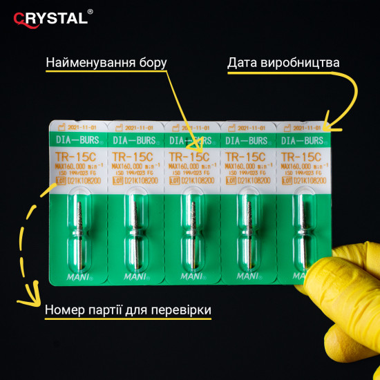 Використовується для формування закруглених уступів під час препарування під металокерамічні, металеві коронки та коронки на каркасі з діоксиду цирконію. Бор дозволяє сформувати скошений уступ з кутом скосу 100-110 градусів (жолоб).