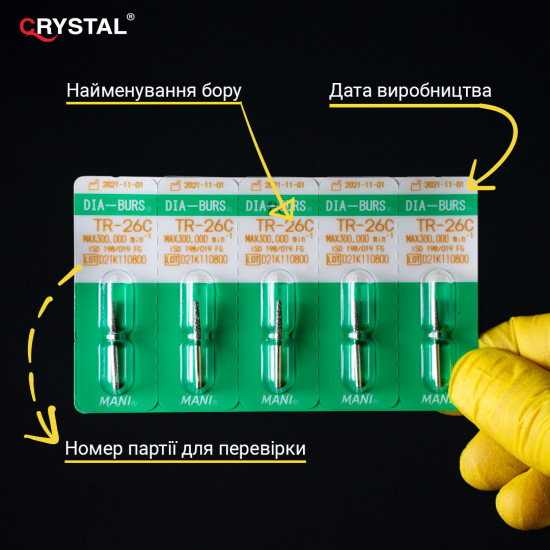Алмазний бор TR-26C (Taper Round - Конусоподібний закруглений кінчик). Закруглений конус, ISO 198/019, зелений, Mani (Japan)
