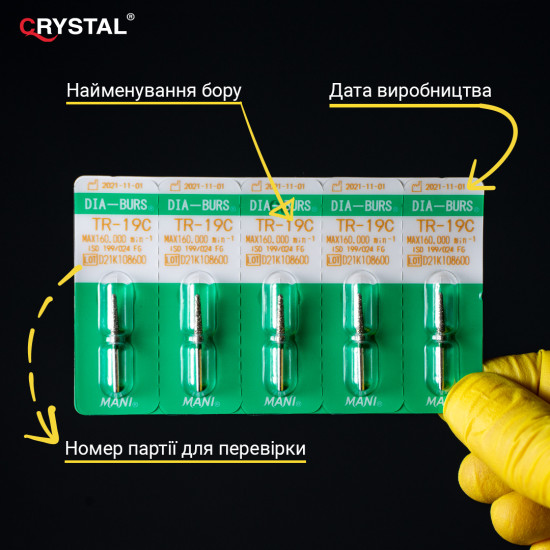 Використовується для формування закруглених уступів під час препарування під металокерамічні, металеві коронки та коронки на каркасі з діоксиду цирконію. Бор дозволяє сформувати скошений уступ з кутом скосу 100-110 градусів (жолоб).