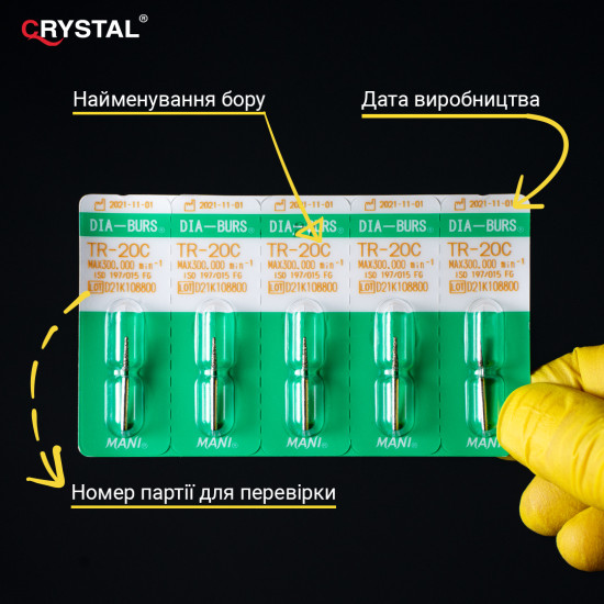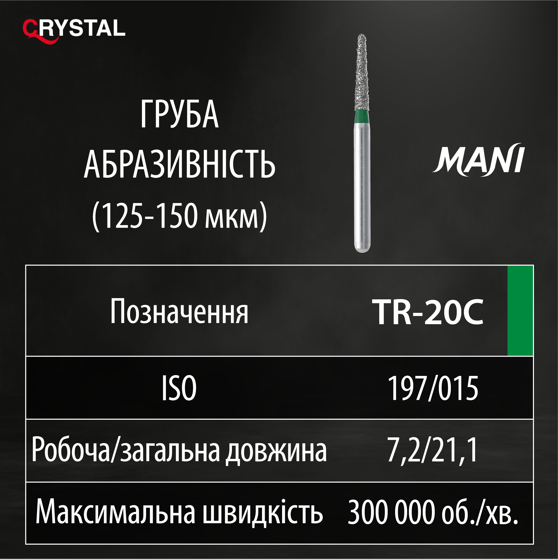 Алмазний бор TR-20C (Taper Round - Конусоподібний закруглений кінчик). Закруглений конус, ISO 197/015, зелений, Mani (Japan)