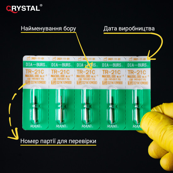 Алмазний бор TR-21C (Taper Round - Конусоподібний закруглений кінчик). Закруглений конус, ISO 197/017, зелений, Mani (Japan)