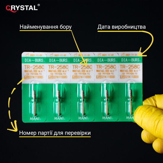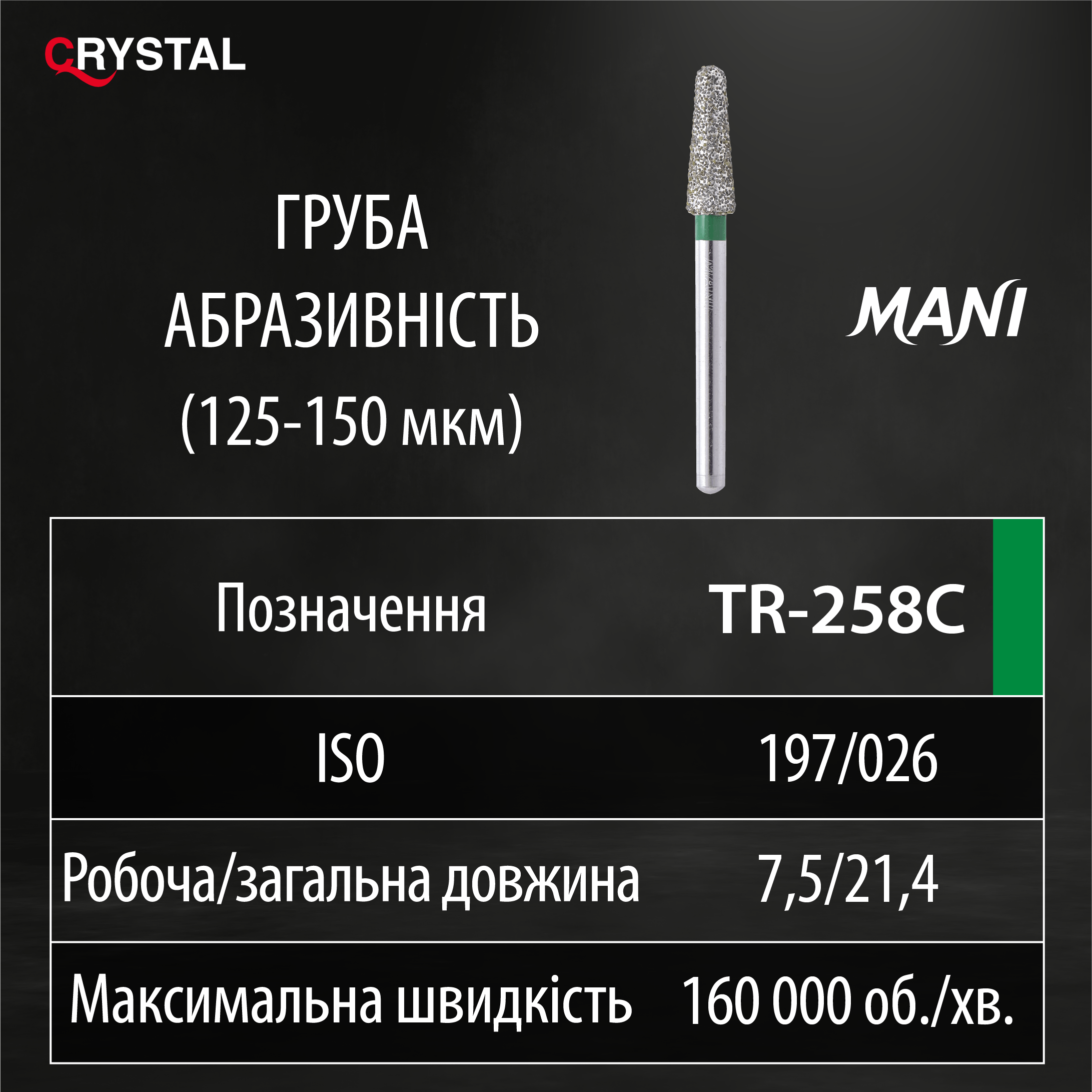 Алмазний бор TR-258C (Taper Round - Конусоподібний закруглений кінчик). Закруглений конус, ISO 197/026, зелений, Mani (Japan)