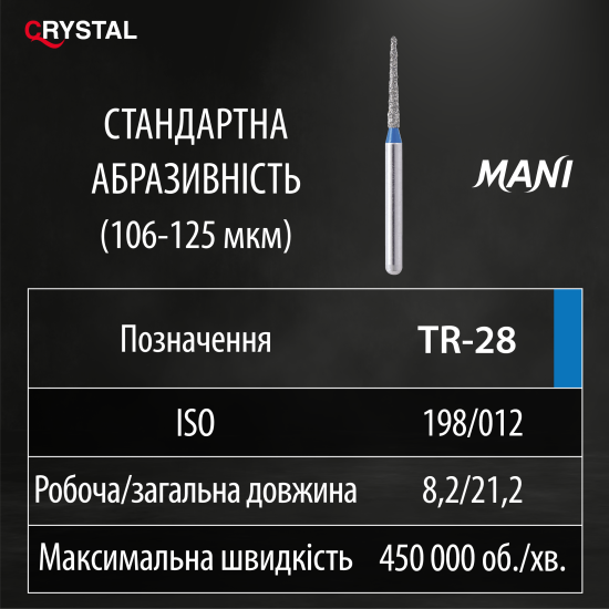 Алмазний бор TR-28 (Taper Round - Конусоподібний закруглений кінчик). Закруглений конус, ISO 198/012, синій, Mani (Japan)