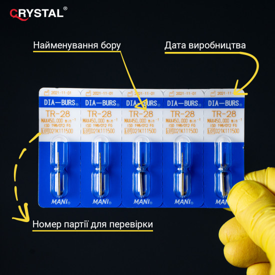 Використовується для формування закруглених уступів під час препарування під металокерамічні, металеві коронки та коронки на каркасі з діоксиду цирконію. Бор дозволяє сформувати скошений уступ з кутом скосу 100-110 градусів (жолоб).