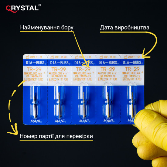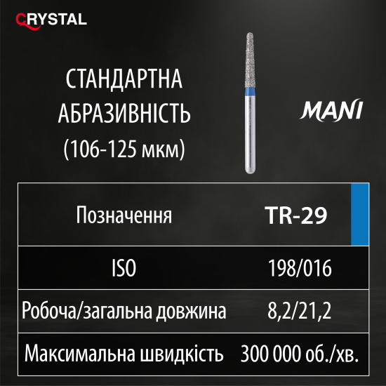 Алмазний бор TR-29 (Taper Round - Конусоподібний закруглений кінчик). Закруглений конус, ISO 198/016, синій, Mani (Japan)