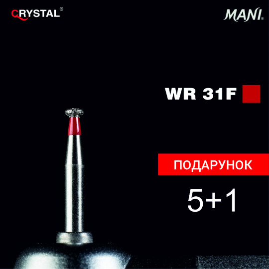 Алмазний бор WR-31F (Wheel Round - Колесо круглий край). Колесоподібний, ISO 072/015, червоний, Mani (Japan)