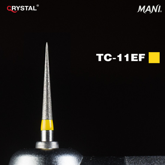Алмазний бор TC-11EF (Taper Conical - Конусоподібний плоский кінчик). Конус, ISO 166/016, жовтий, Mani (Japan)