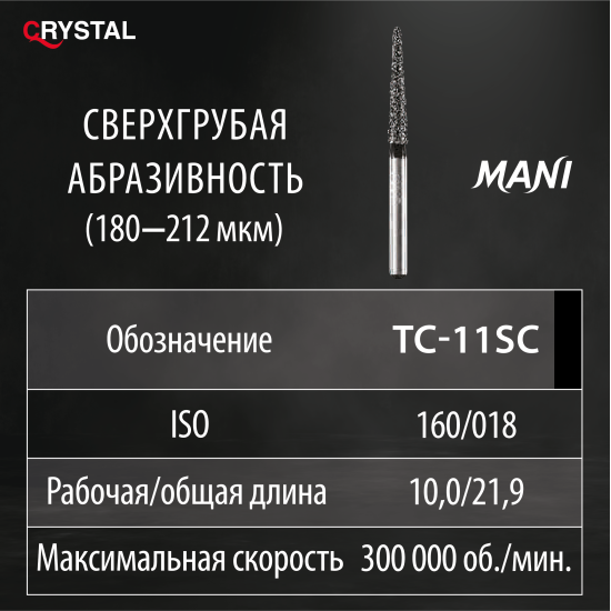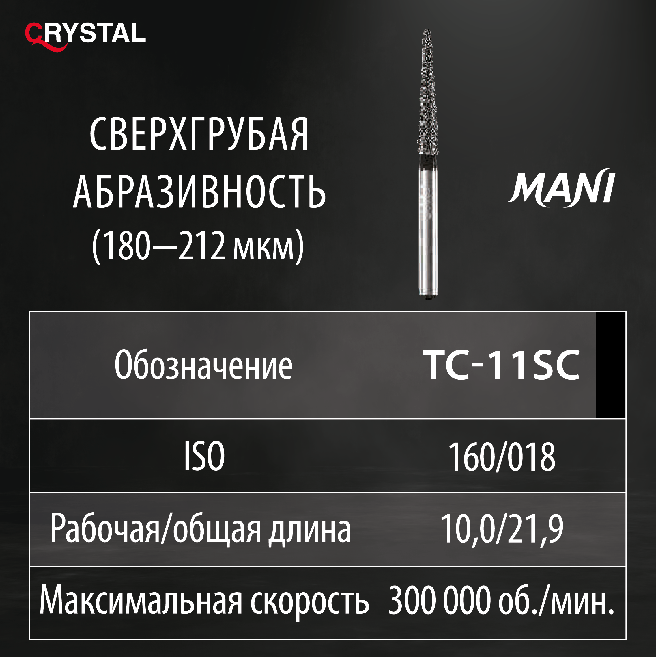 Алмазний бор TC-11SC (Taper Conical - Конусоподібний плоский кінчик). Конус, ISO 166/018, чорний, Mani (Japan)