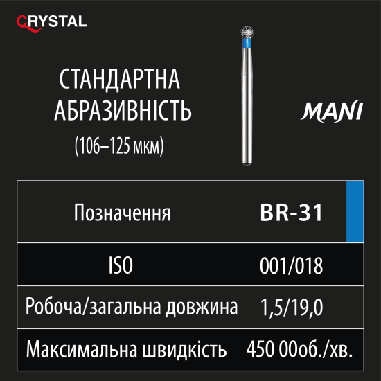 Алмазний бор BR-31 (Ball Round - Кулястий). Кулястий, ISO 001/018, синій, Mani (Japan)
